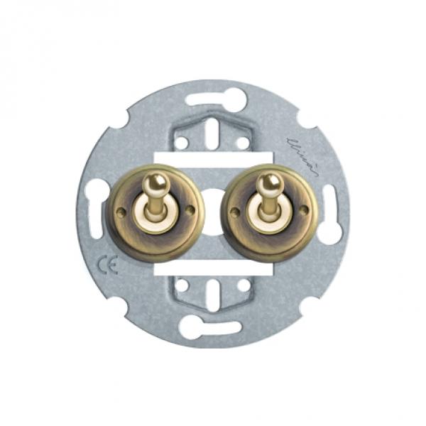 - doppelter Kippschalter aus Messing, brüniert und matt gebürstet. Um zwei Lampen aus einem einzigen Schaltereinsatz separat ein- und auszuschalten.