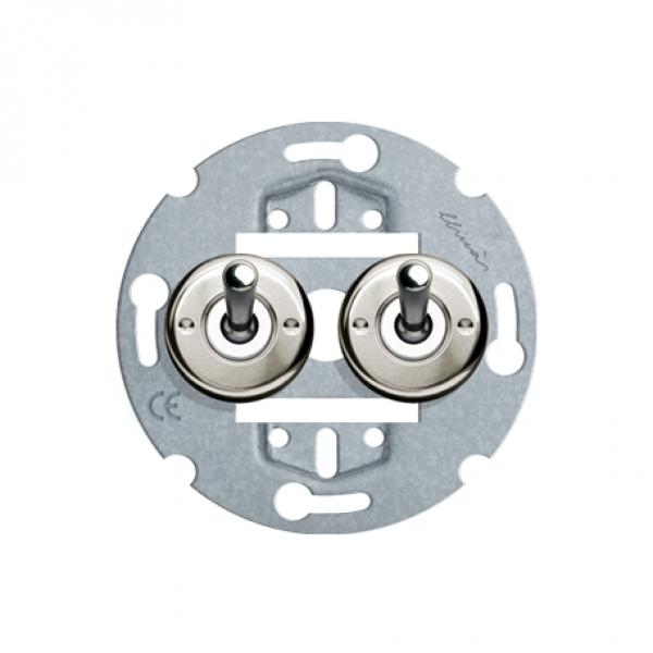 - doppelter Kippschalter aus Messing, Hochglanz vernickelt. Um zwei Lampen aus einem einzigen Schaltereinsatz separat ein- und auszuschalten.