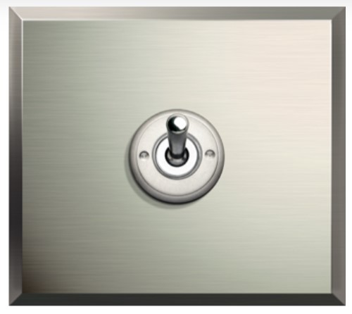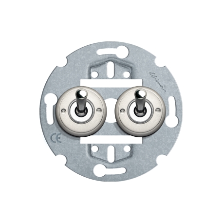 - doppelter Kippschalter silbern, Messing matt vernickelt (satiniert). Um zwei Lampen aus einem einzigen Schaltereinsatz separat ein- und auszuschalten.