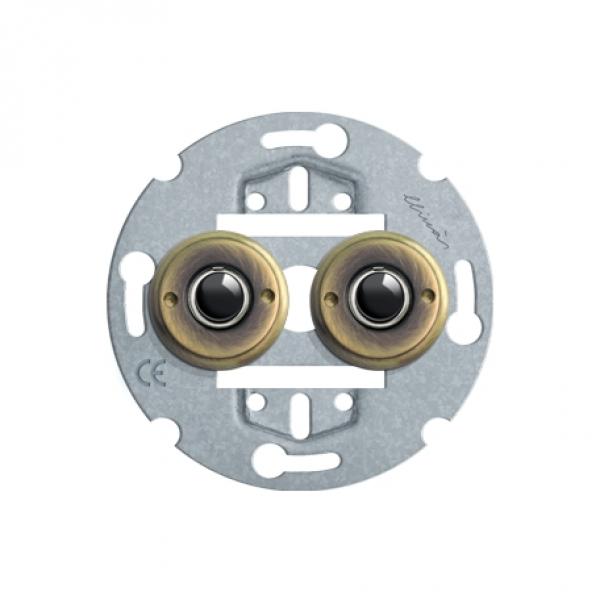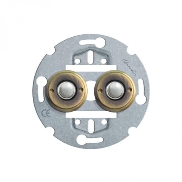 - runder doppelter Tastschalter aus Messing, brüniert und matt gebürstet, um zwei Lichtquellen aus einem einzigen Schaltereinsatz separat ein- und auszuschalten.