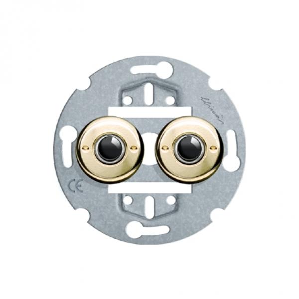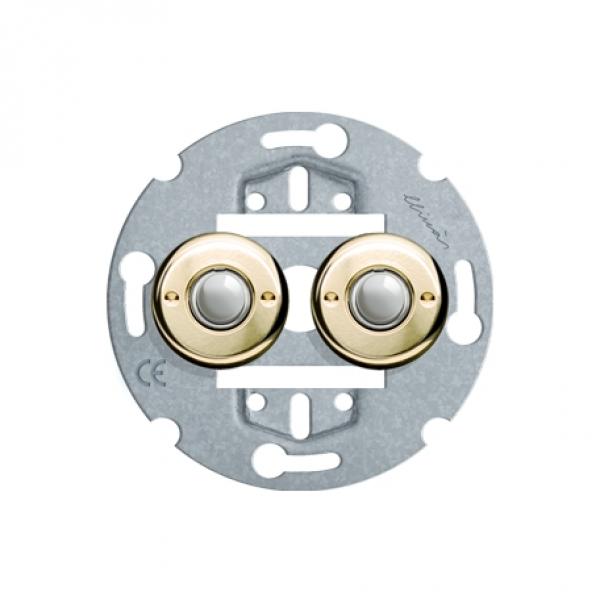 - runder doppelter Tastschalter aus Messing, Hochglanz poliert, um zwei Lichtquellen aus einem einzigen Schaltereinsatz separat ein- und auszuschalten.