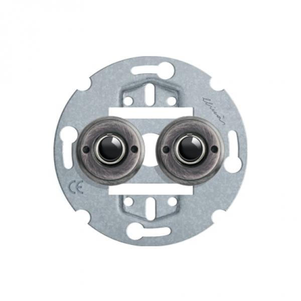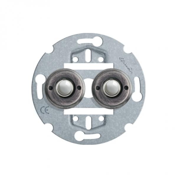 - runder doppelter Tastschalter aus Messing, dunkel matt vernickelt. Um zwei Lichtquellen aus einem einzigen Schaltereinsatz separat ein- und auszuschalten.
