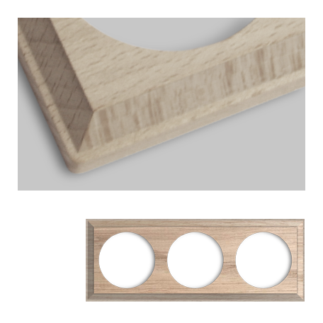 Holzrahmen Buche Natur eckig - 3 Schalter - Unterputz