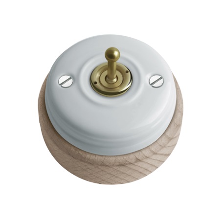 Kippschalter Porzellan mit Holzsockel - Aufputz