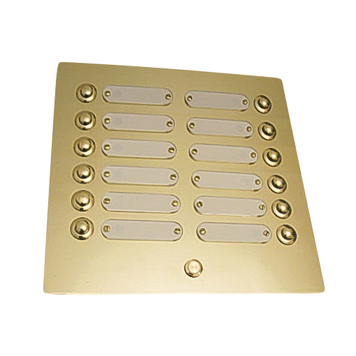 Klingelanlage mit 12 Klingeltastern und einem Lichttaster aus massivem Messing. Eine geschmeidige Form, die sich bei der Klingelplatte VERONA bis ins Detail der Namensschilder fortsetzt. Die Oberfläche der Türklingel aus massivem Messing ist unlackiert, damit sie ihre ganz eigene Patina entwickeln kann.