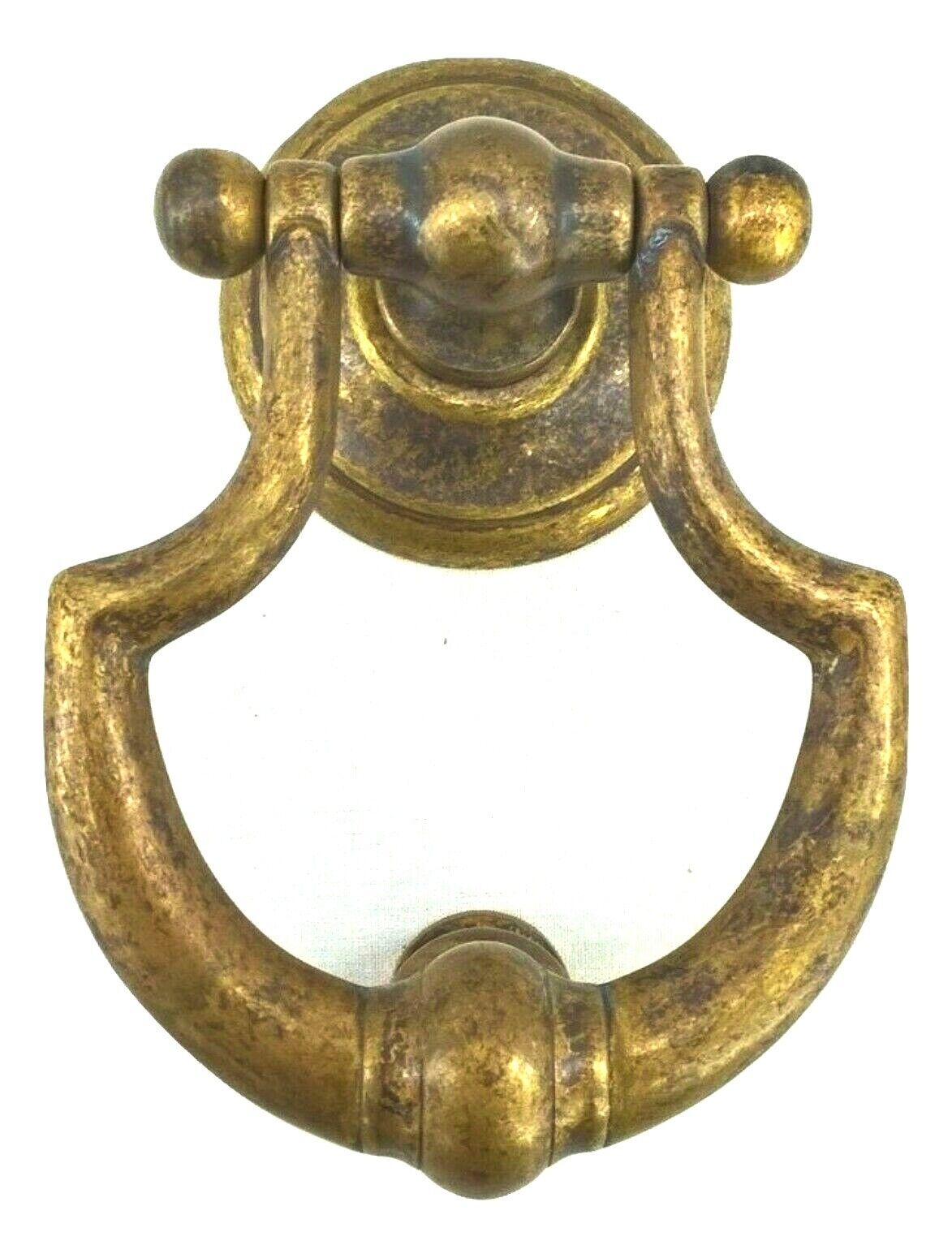 Türklopfer aus Messing antik brüniert, der sowohl an eine alte als auch für eine klassisch moderne Haustür passt. Der Türklopfer hebt sich elegant vom Holz der Haustür ab und untermalt das stilvolle Ambiente des Eingangs. Durch den Einsatz massiven Messings und gekonnter Handarbeit entsprechen unsere Türklopfer den Original-Beschlägen aus dem vergangenen Jahrhundert. Der Türklopfer ist antik brüniert, um bestehende Messingbeschläge an massiven Holztüren stilvoll zu ergänzen. Passend zur antiken Optik finden Sie die gleichnamige