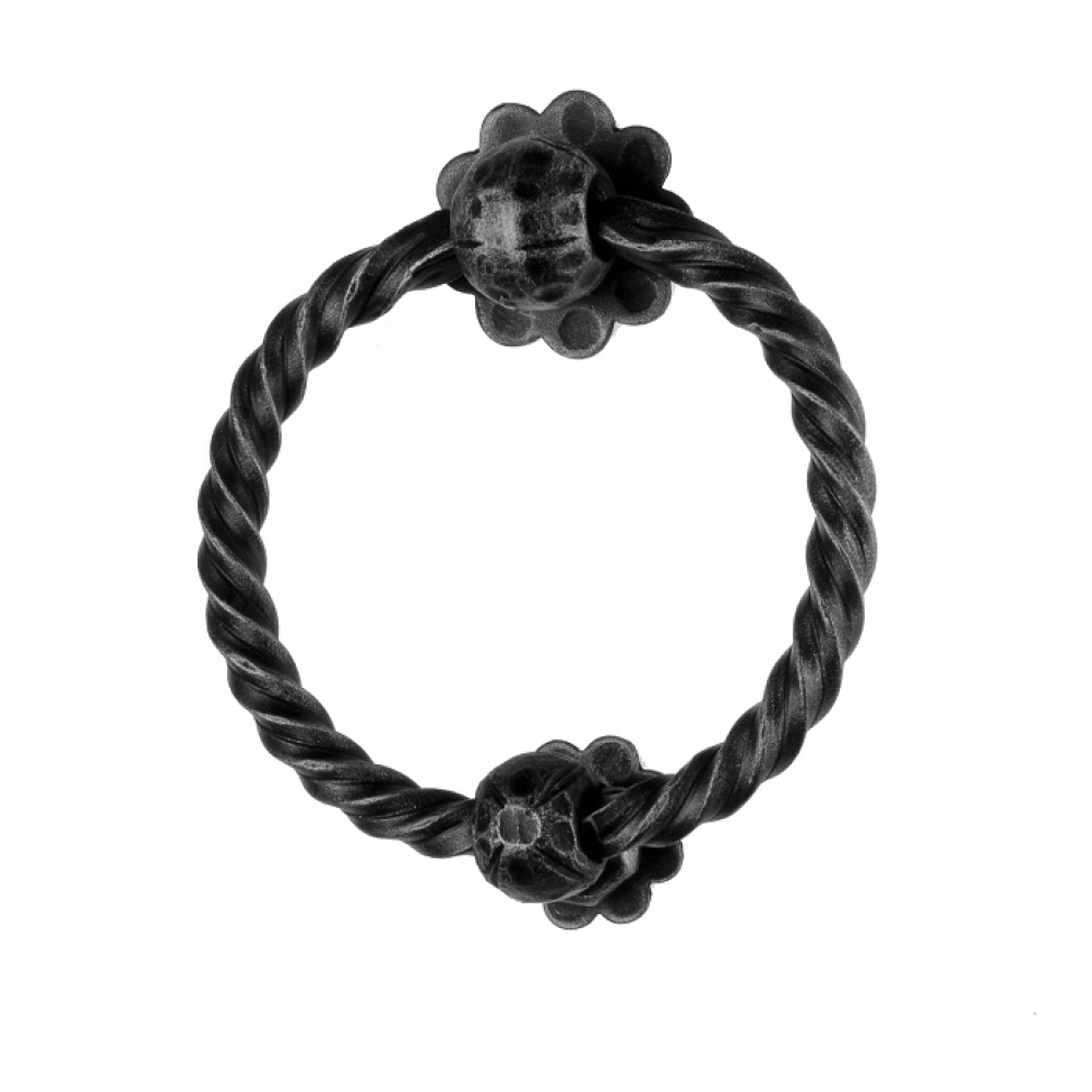 Die Drehung des Rings gibt dem Türklopfer Dynamik und Leichtigkeit. Der Türklopfer aus Eisen wird in der Lombardei, in einem hundertjährigen Familienbetrieb in