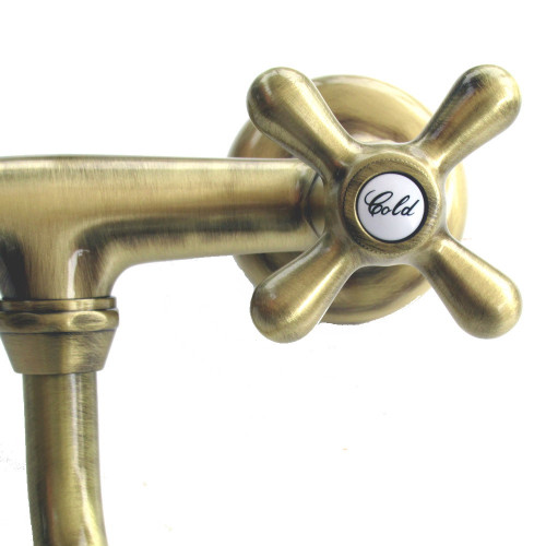 Die nostalgische Wandarmatur ZITA ist eine stilvolle Zweigriff-Armatur für den Einsatz in Küche, Garten oder Ausgussbecken. Ihr klassisches Design passt ideal zu Einrichtungen im Landhausstil oder zu historischen Gebäuden, bei denen Wert auf authentische Details gelegt wird.