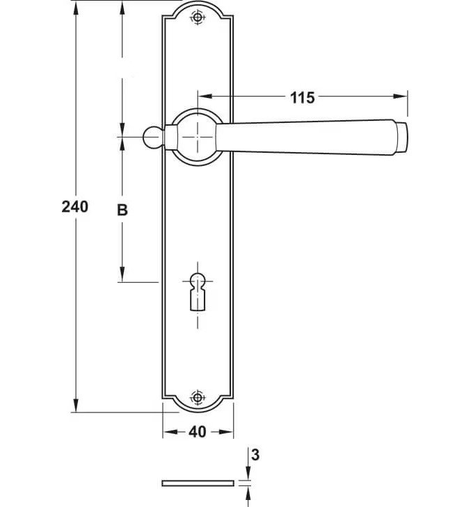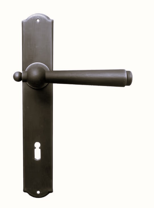 - Komplette Drückergarnitur mit Langschildern und Türdrückern aus Schmiedeeisen